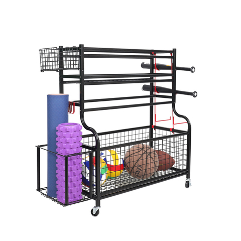 होम जिम आयोजक धातु जाल कार्ट कार्बन स्टील बास्केटबॉल स्टैंड बॉल स्टोरेज धारकों और रैक